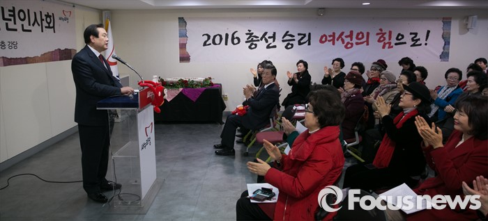 (서울=포커스뉴스) 김무성 새누리당 대표가 11일 오후 서울 여의도 당사에서 열린 2016 중앙여성위원회 신년인사회에 참석해 축사를 하고 있다.