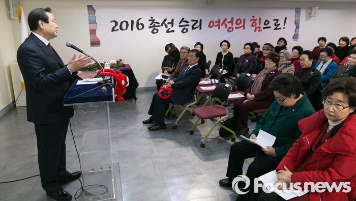 (서울=포커스뉴스) 김무성 새누리당 대표가 11일 오후 서울 여의도 당사에서 열린 2016 중앙여성위원회 신년인사회에 참석해 축사를 하고 있다.