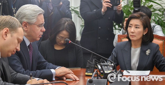 (서울=포커스뉴스) 11일 오후 서울 여의도 국회 외교통일위원회에서 나경원 위원장과 여야 의원, 알렉산드르 안드레예비치 티모닌 주한러시아대사가 북한 핵실험 관련 간담회를 하고 있다.