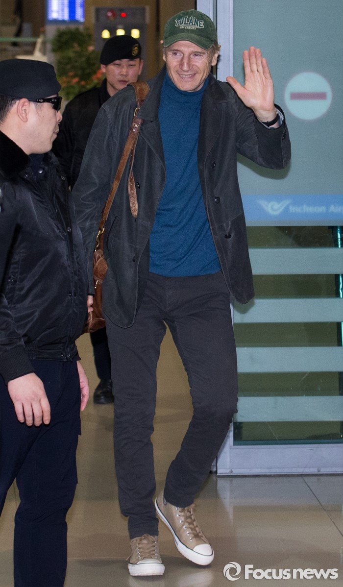 (인천=포커스뉴스) 할리우드 배우 리암 니슨이 영화 '인천상륙작전' 촬영을 위해 11일 오후 인천 중구 인천국제공항으로 입국하고 있다.