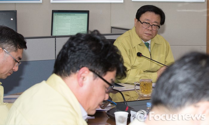 (세종=포커스뉴스) 이동필 농림축산식품부장관이 12일 오전 세종시 농식품부 AI·구제역대책상황실에서 구제역 방역상황 긴급 점검회의를 주재하고 있다.