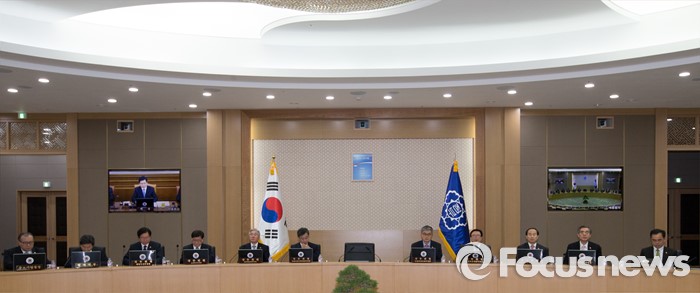 (세종=포커스뉴스) 12일 오전 세종시 정부세종청사 국무회의장에서 열린 서울-세종 영상 국무회의에 참석한 국무위원들이 황교안 총리의 발언을 경청하고 있다.