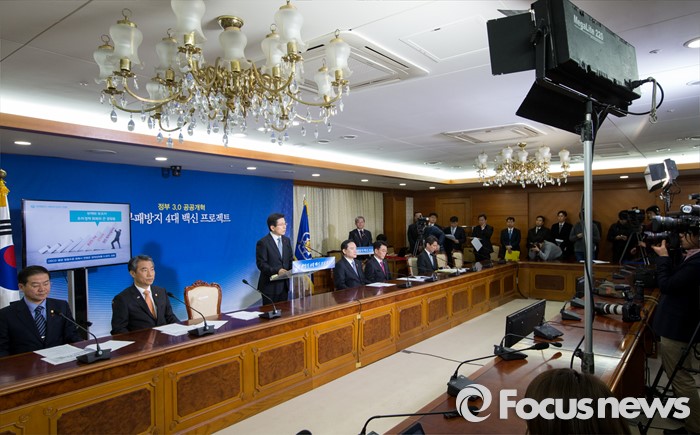 (서울=포커스뉴스) 12일 오전 서울 종로구 정부서울청사에서 황교안 국무총리가 부패방지 4대 백신 프로젝트를 발표하고 있다. 정부는 이날 발표를 통해 실시간 감시, 리스크 관리, 정보상시 공유ㆍ연계, 내부클린시스템의 4대 백신 프로젝트를 2016년 부터 16개 분야, 240조원 운용 규모의 공공시스템에 본격 가동한다고 밝혔다.