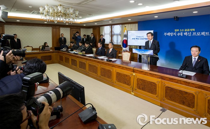 (서울=포커스뉴스) 12일 오전 서울 종로구 정부서울청사에서 황교안 국무총리가 부패방지 4대 백신 프로젝트를 발표하고 있다. 정부는 이날 발표를 통해 실시간 감시, 리스크 관리, 정보상시 공유ㆍ연계, 내부클린시스템의 4대 백신 프로젝트를 2016년 부터 16개 분야, 240조원 운용 규모의 공공시스템에 본격 가동한다고 밝혔다.