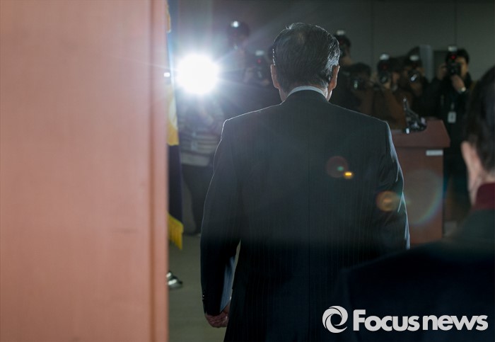 (서울=포커스뉴스) 권노갑 더불어민주당 상임고문이 12일 오전 서울 여의도 국회 정론관에서 탈당 기자회견을 위해 입장하고 있다.