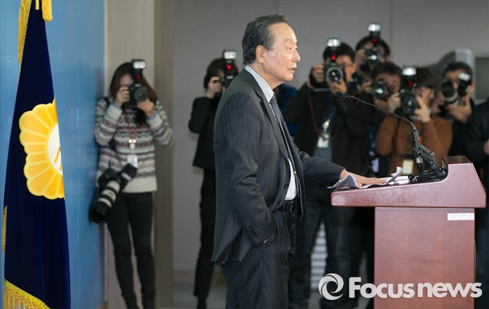 (서울=포커스뉴스) 권노갑 더불어민주당 상임고문이 12일 오전 서울 여의도 국회 정론관에서 탈당 기자회견을 하고 있다.