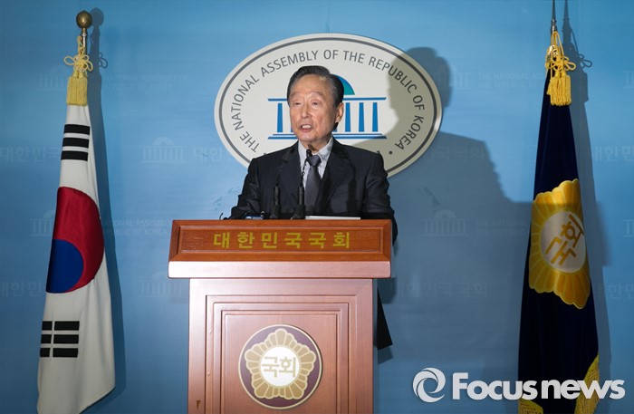 (서울=포커스뉴스) 권노갑 더불어민주당 상임고문이 12일 오전 서울 여의도 국회 정론관에서 탈당 기자회견을 하고 있다.