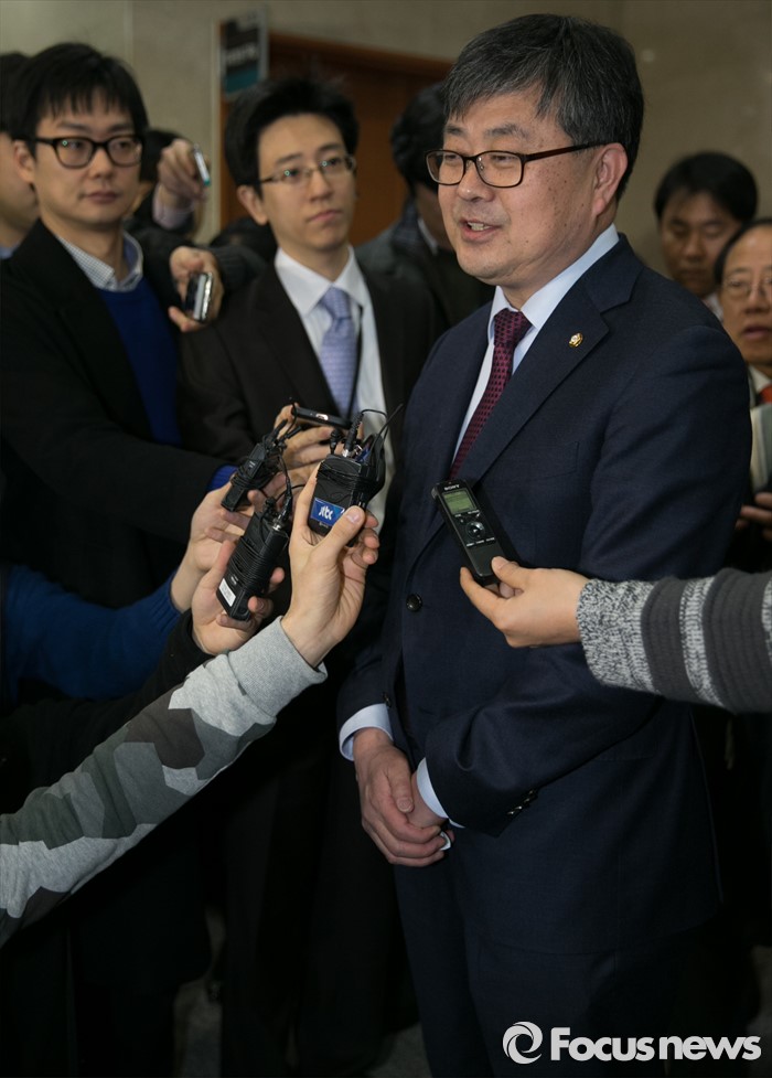 (서울=포커스뉴스) 최원식 더불어민주당 의원이 12일 오전 서울 여의도 국회 정론관에서 탈당 및 국민의당 합류 기자회견을 마친 뒤 취재진 질문에 답하고 있다.