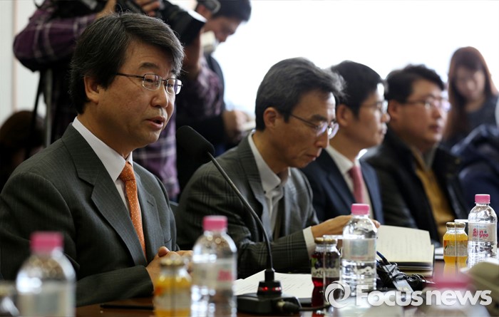 (서울=포커스뉴스) 12일 오전 서울 서대문구 충정로 법무법인 지평 회의실에서 열린 '삼성전자 반도체 등 사업장에서의 백혈병 등 질환 발병과 관련한 문제 해결을 위한 조정위원회'에서 김지형 조정위원장이 모두발언을 하고 있다.