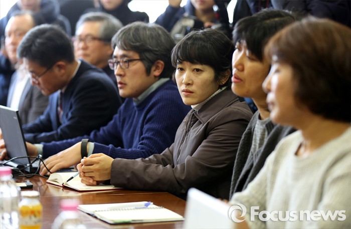 (서울=포커스뉴스) 12일 오전 서울 서대문구 충정로 법무법인 지평 회의실에서 열린 '삼성전자 반도체 등 사업장에서의 백혈병 등 질환 발병과 관련한 문제 해결을 위한 조정위원회'에 가족대책위원회와 반올림(반도체 노동자의 건강과 인권 지킴이) 회원들이 참석하고 있다.