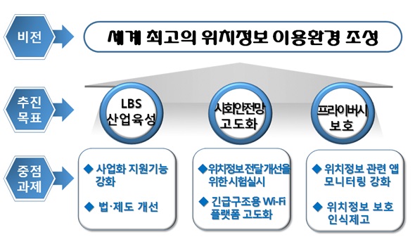 따라서 방통위는 △LBS 산업 육성 △사회안전망 고도화 △프라이버시 보호를 추진목표로 하는 위치정보 이용 활성화 계획을 수립했다.