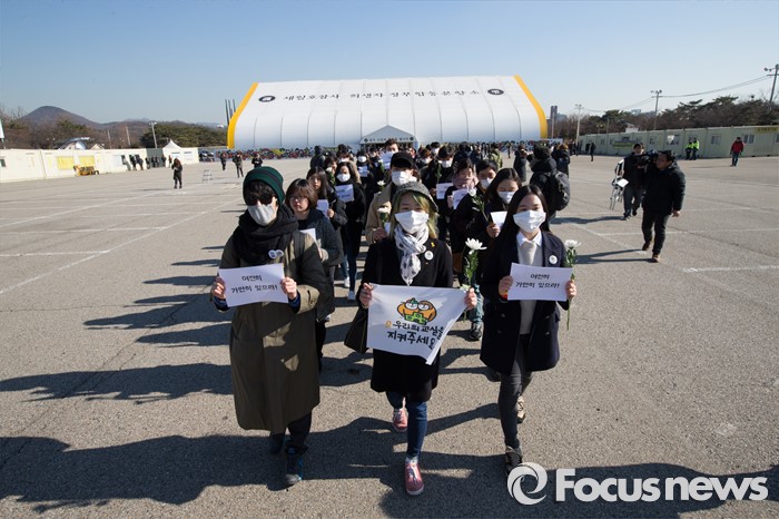 (안산=포커스뉴스) 12일 오후 경기도 안산시 세월호 사고 희생자 정부 합동분향소에서 유가족및 시민들이 416 추모식과 분향을 마친후 단원고까지 행진을 시작하고 있다.