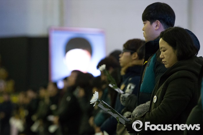 (안산=포커스뉴스) 12일 오후 경기도 안산시 세월호 사고 희생자 정부 합동분향소에서 유가족 및 시민들이 416 추모식을 하고 있다.