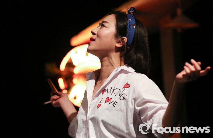 (서울=포커스뉴스) 12일 오후 서울 종로구 상명아트홀에서 열린 연극 'ALMOST MAINE(올모스트 메인)' 프레스콜에 참석한 연극배우 신의정이 공연을 선보이고 있다.
