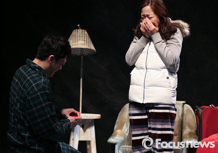 (서울=포커스뉴스) 12일 오후 서울 종로구 상명아트홀에서 열린 연극 'ALMOST MAINE(올모스트 메인)' 프레스콜에 참석한 연극배우 정순원(왼쪽)과 이지해가 공연을 선보이고 있다.