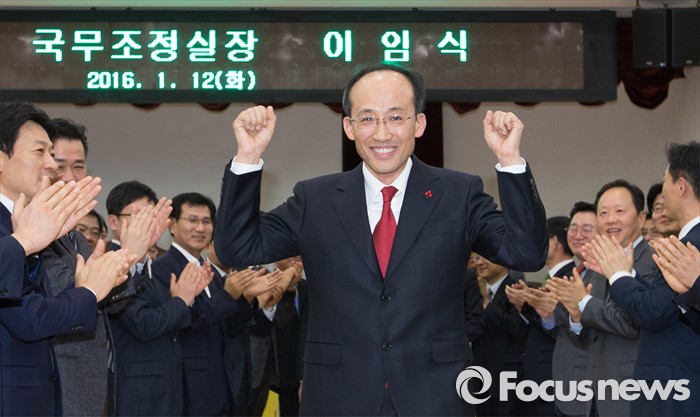 (세종=포커스뉴스) 추경호 국무조정실장이 12일 오후 세종시 정부세종청사 1동 대강당에서 열린 이임식에서 직원들의 박수를 받으며 청사를 나서고 있다.