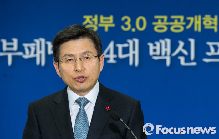 황교안 국무총리는 12일 정부서울청사에서 기자브리핑을 통해 "정부의 새로운 부패척결 추진방식으로 올해부터 평창동계올림픽, 재난안전통신망 등 16개 분야 총 240조원을 운용하는 공공시스템에 부패방지 4대 백신프로젝트를 본격 가동한다"고 밝혔다.