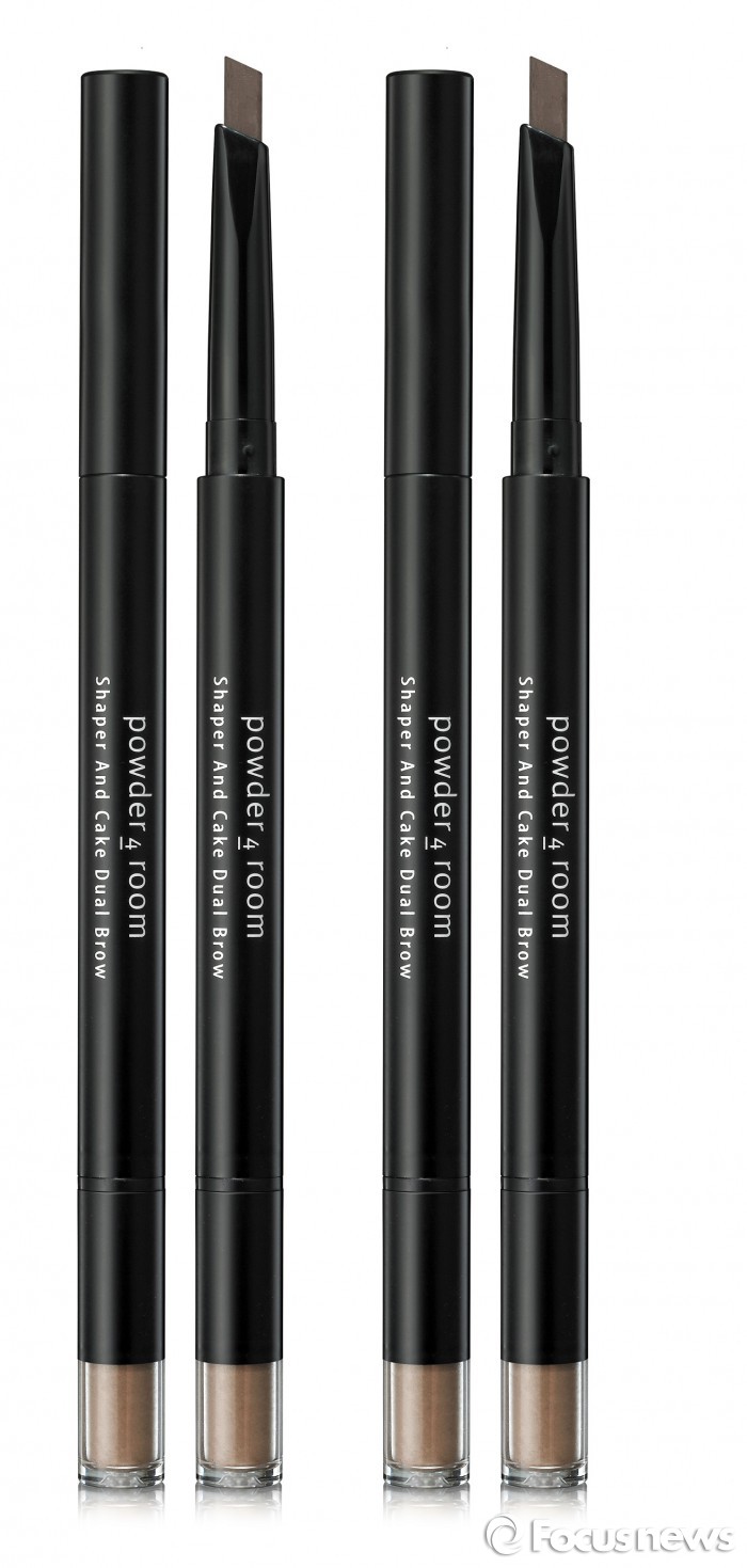 쉐이퍼 앤 케이크 듀얼 브로우는 삼각모양의 펜슬과 케이크 파우더로 구성된 아이브로우다.