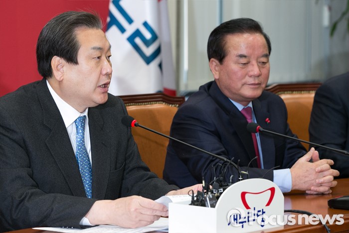 (서울=포커스뉴스) 김무성(왼쪽) 새누리당 대표가 13일 오전 서울 여의도 국회에서 열린 최고중진연석회의에 참석해 모두발언하고 있다.