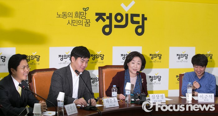 (서울=포커스뉴스) 13일 오전 서울 여의도 국회에서 열린 정의당 청년정당 비전발표회에 참석한 심상정 상임대표가 인사말을 하고 있다. 왼쪽부터 김광진 더불어민주당 의원, 배준호 정의당 부대표, 심 상임대표, 이준석 새누리당 전 혁신위원장.