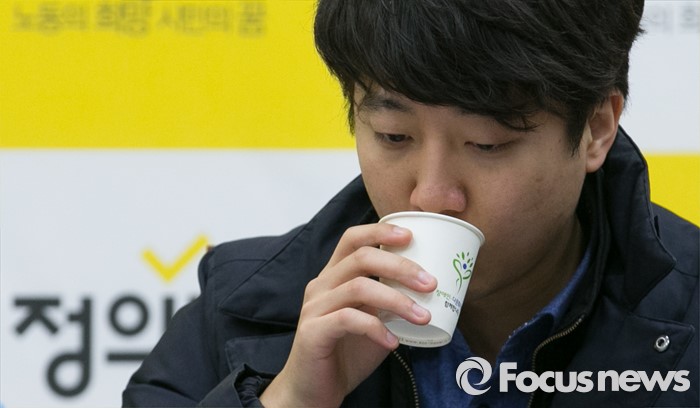 (서울=포커스뉴스) 13일 오전 서울 여의도 국회에서 열린 정의당 청년정당 비전발표회에 참석한 이준석 새누리당 전 혁신위원장이 물을 마시고 있다.