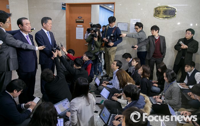 (서울=포커스뉴스) 13일 오전 서울 여의도 국회 정론관에서 장병완(왼쪽), 주승용 더불어민주당 의원이 탈당 기자회견을 마친 뒤 취재진 질문에 답하고 있다.