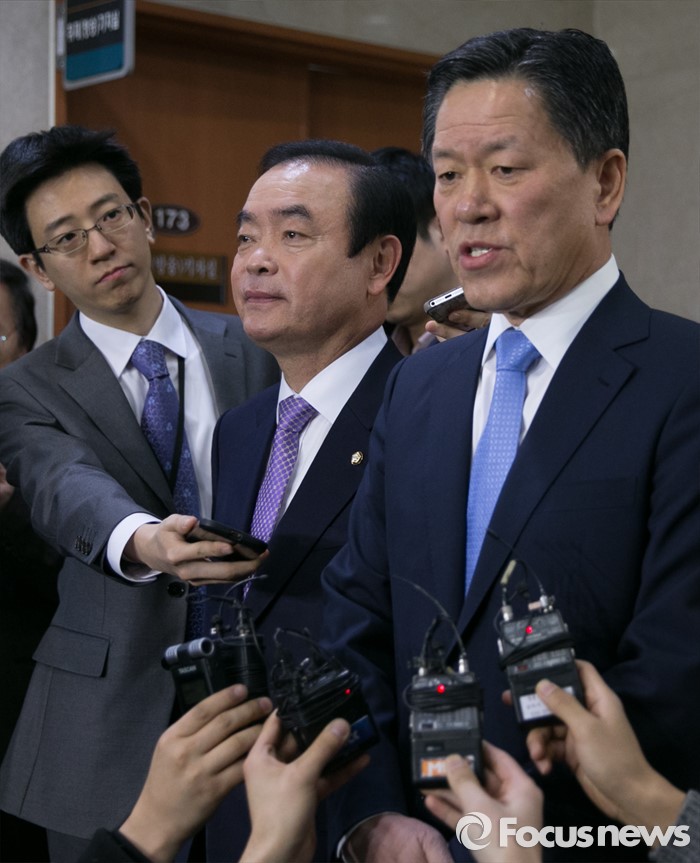 (서울=포커스뉴스) 13일 오전 서울 여의도 국회 정론관에서 장병완(왼쪽), 주승용 더불어민주당 의원이 탈당 기자회견을 마친 뒤 취재진 질문에 답하고 있다.