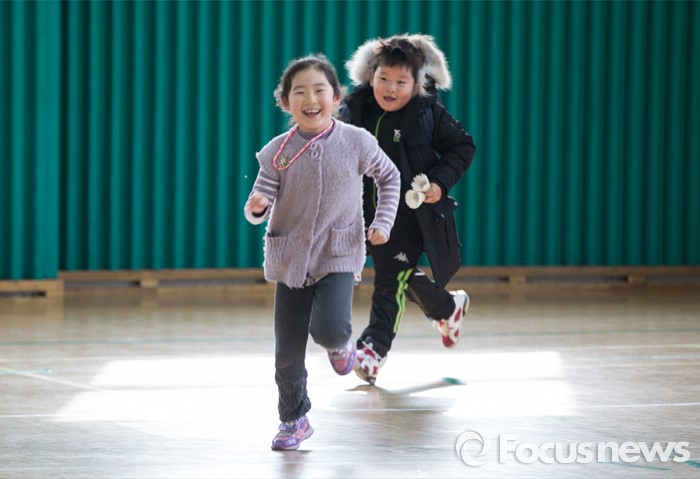 (서울=포커스뉴스) 13일 오후 서울 용산구 이태원초등학교에서 초등학교 신입생 예비소집 행사가 열렸다. 예비소집 장소인 강당에서 아이들이 천진난만한 모습으로 놀고 있다.