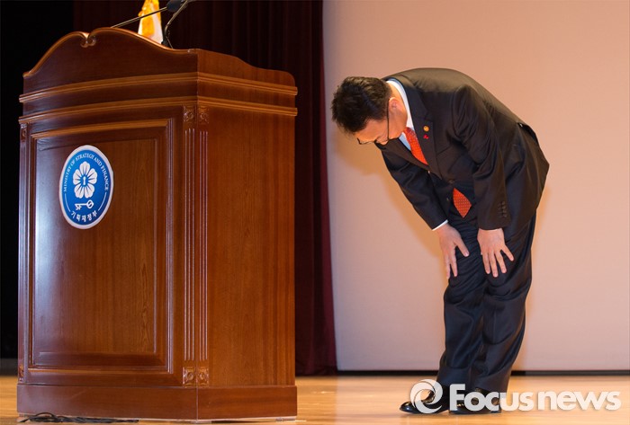 (세종=포커스뉴스) 유일호 신임 경제부총리 겸 기획재정부장관이 13일 오후 세종시 정부세종청사 대강당에서 열린 취임식에 참석해 인사를 하고 있다.