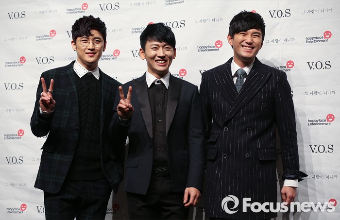 (서울=포커스뉴스) 13일 오후 서울 강남구 일지아트홀에서 열린 남성 3인조 그룹 V.O.S의 미니앨범 'Re:Union, The Real' 쇼케이스에 참석한 멤버 최현준(왼쪽부터), 박지헌, 김경록이 포토타임을 갖고 있다.