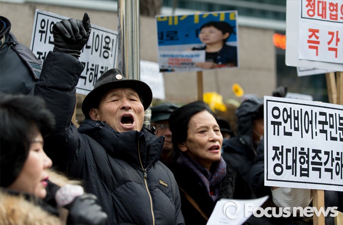 (서울=포커스뉴스) 13일 오후 서울 종로구 구 일본대사관 앞에서 어버이연합이 한국정신대문제대책협의회를 비난하는 기자회견을 하고 있다.