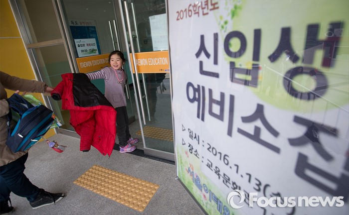 (서울=포커스뉴스) 초등학교 신입생 예비소집일인 13일 오후 서울 용산구 이태원초등학교에서 한 예비초등학생이 예비소집일을 맞아 소집 장소로 향하고 있다.