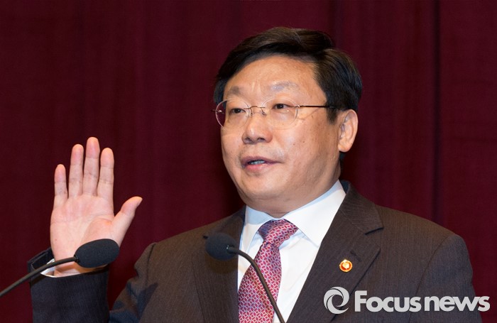 (세종=포커스뉴스) 주형환 신임 산업통상자원부장관이 13일 오후 세종시 정부세종청사 산업부 대강당에서 열린 취임식에 참석해 공무원 선서를 하고 있다.