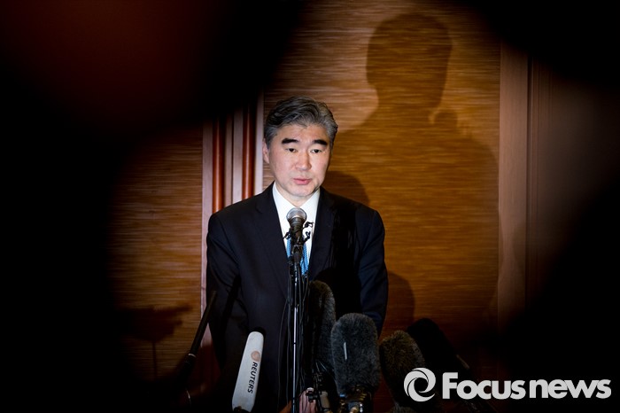 (서울=포커스뉴스) 성 김 미국 국무부 대북정책특별대표가 13일 오후 서울 중구 롯데호텔에서 열린 '한미일 6자회담 수석대표 긴급회동'에 자리해 북한 4차 핵실험 강행 관련 대북제재 방안 논의를 마친 뒤 입장발표를 하고 있다.