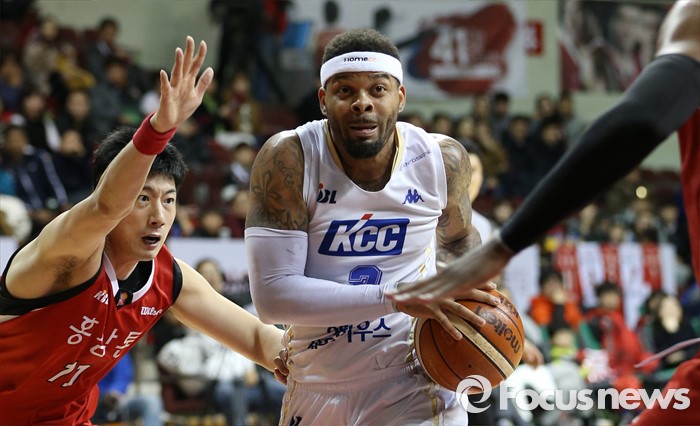 (안양=포커스뉴스) 13일 안양실내체육관에서 열린 2015-2016 프로농구 KGC-KCC 경기에서 KCC 안드레 에밋이 KCC 양희종의 마크를 뿌리치며 골밑으로 대시하고 있다.
