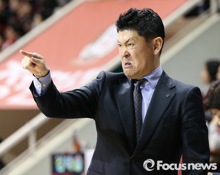 (안양=포커스뉴스) 13일 안양실내체육관에서 열린 2015-2016 프로농구 KGC-KCC 경기에서 KCC 추승균 감독이 선수들의 위치를 지시하고 있다.