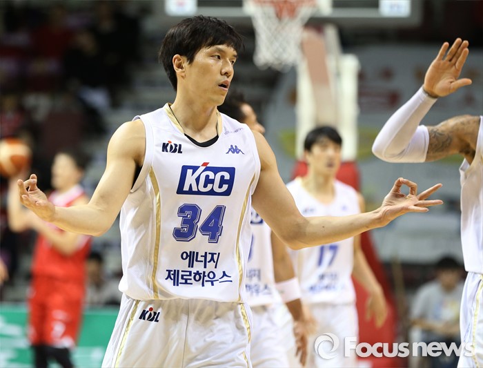 (안양=포커스뉴스) 13일 안양실내체육관에서 열린 2015-2016 프로농구 KGC-KCC 경기에서 KCC 김효범이 3점슛을 성공시키고 기쁨의 표현을 하고 있다.