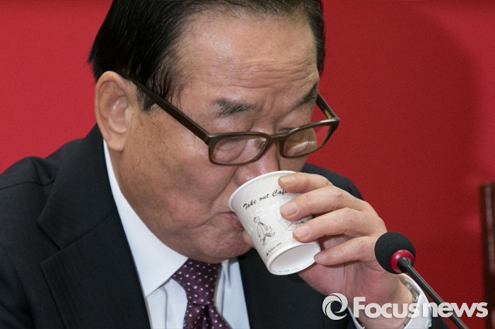(서울=포커스뉴스) 서청원 새누리당 최고위원이 14일 오전 서울 여의도 국회에서 열린 최고위원회의에 참석해 물을 마시고 있다.