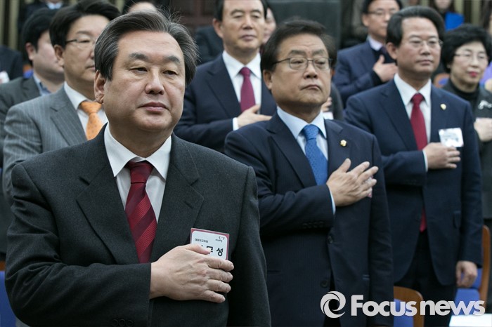 (서울=포커스뉴스) 김무성(앞) 새누리당 대표를 비롯한 전국위원들이 14일 오전 서울 여의도 국회에서 열린 제7차 상임전국위원회에 참석해 국민의례를 하고 있다.