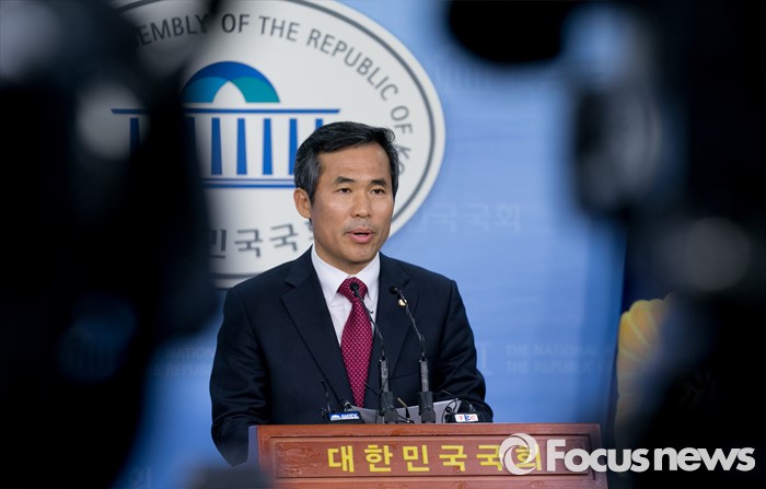 (서울=포커스뉴스) 김승남 더불어민주당 의원이 14일 오전 서울 여의도 국회 정론관에서 탈당 기자회견을 하고 있다.
