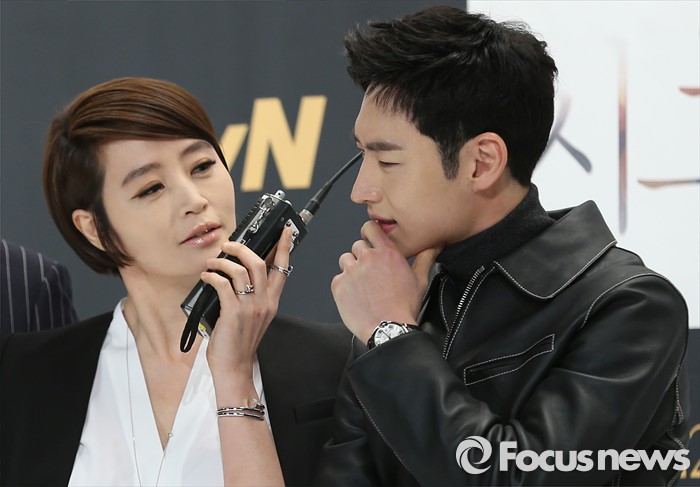 (서울=포커스뉴스) 14일 오후 서울 영등포구 타임스퀘어 아모리스홀에서 열린 tvN 10주년 특별기획 '시그널' 제작발표회에 참석한 배우 김혜수(왼쪽)와 이제훈이 포토타임을 갖고 있다.