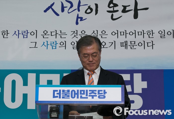 (서울=포커스뉴스) 문재인 더불어민주당 대표가 14일 오후 서울 여의도 국회에서 지난 2012년 대선 당시 박근혜 대통령의 경제민주화 공약을 만든 김종인 전 의원을 조기선대위원장으로 영입한 것과 관련 기자간담회를 하고 있다.