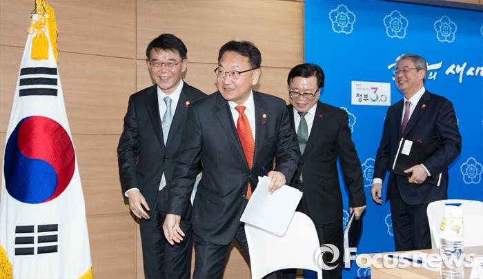 왼쪽부터 강호인 국토교통부장관, 유일호 부총리, 이동필 농림축산식품부장관, 임종룡 금융위원장.