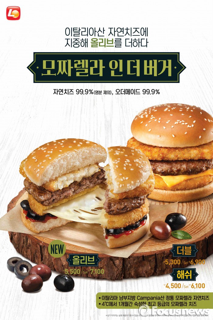 (서울=포커스뉴스) 롯데리아는 고객의 선호도를 반영해 '모짜렐라 인 더 버거 올리브'를 출시했다고 14일 밝혔다.