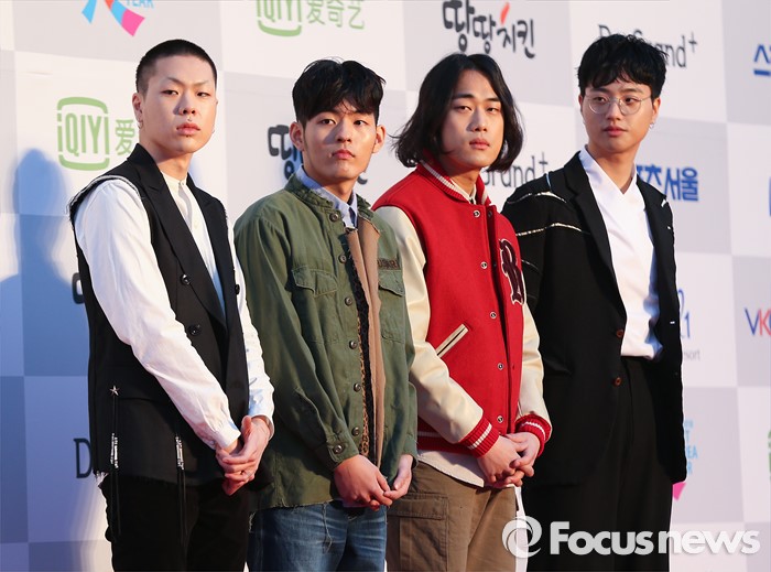(서울=포커스뉴스) 14일 오후 서울 송파구 올림픽 체조경기장에서 열린 '25회 하이원 서울가요대상' 시상식에 참석한 혁오밴드가 포토타임을 갖고 있다.
