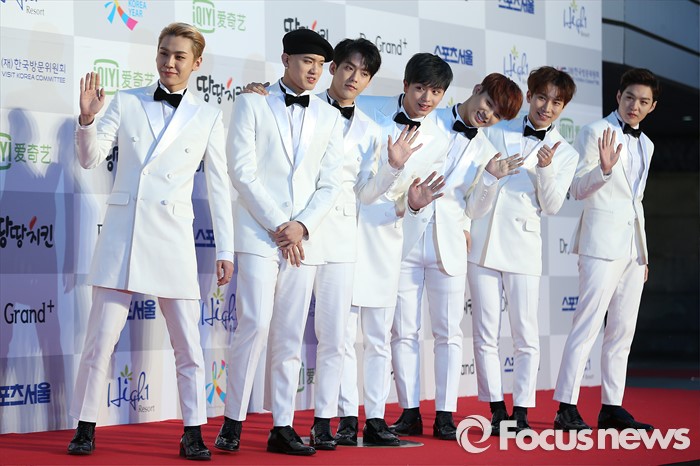 (서울=포커스뉴스) 14일 오후 서울 송파구 올림픽 체조경기장에서 열린 '25회 하이원 서울가요대상' 시상식에 참석한 아이돌그룹 비투비의 멤버들이 포토타임을 갖고 있다.