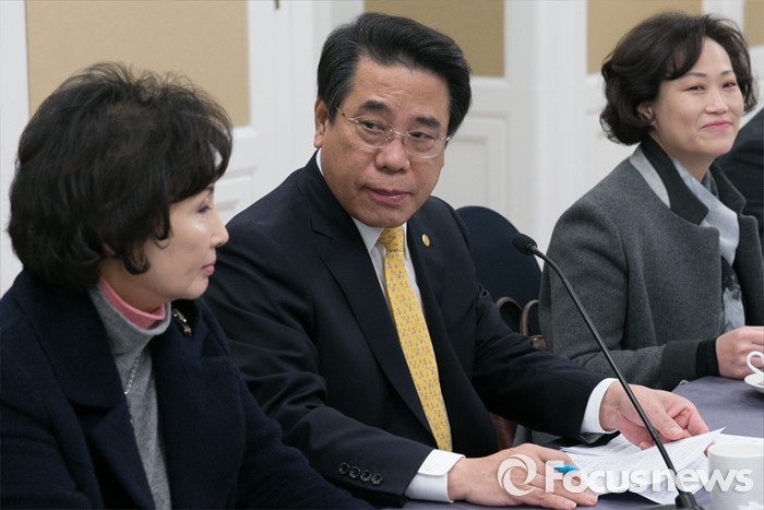 (서울=포커스뉴스) 15일 오전 서울 여의도 국회 귀빈식당에서 열린 카드수수료 관련 간담회에 참석한 조찬휘(가운데) 대한약사회장이 정무위원회 여당 간사인 김용태 새누리당 정책위부의장의 모두발언을 듣고 있다. 이날 간담회는 최근 카드사들이 중·대형 가맹점들에 수수료 인상을 통보한 것과 관련 업계 의견을 청취하기 위해 진행됐으며 한국외식업중앙회, 대한약사회, 서울남서부슈퍼마켓협동조합, 소상공인연합회 등이 참석했다.