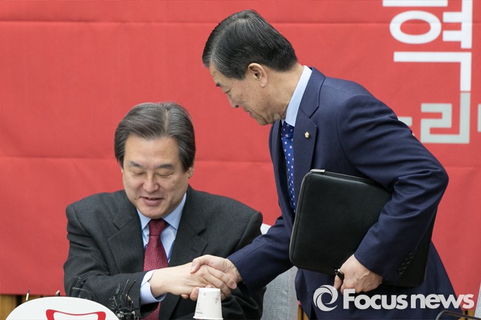 | △ 악수하는 김무성·황진하 |