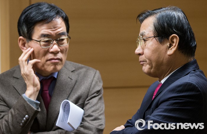 (서울=포커스뉴스) 15일 오전 서울 종로구 정부서울청사에서 노사정위원회 주최로 열린 '노동시장 구조개선 특별위원회 조찬간담회'에 참석한 김대환(오른쪽) 경제사회발전노사정위원장이 최영기 상임위원과 대화하고 있다.