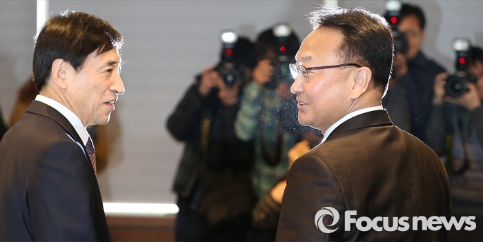 유일호 경제부총리와 이주열 한국은행 총재의 만남